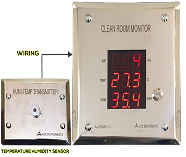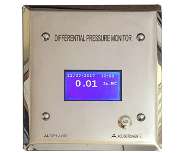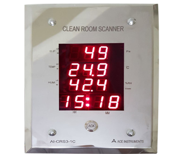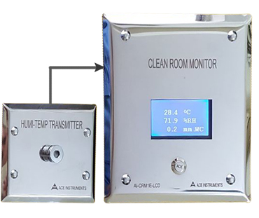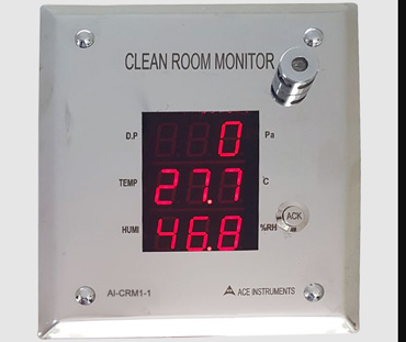 The ACE INSTRUMENTS make Pharma Clean Room Monitor is designed to measure the vital parameters of Temperature, Humidity and Differential pressure in pharma clean room applications. The clean Room Monitor Model AI-CRM1-1 is designed for minimum cabling and easy flush mounting in modular wall panels or brick walls of Clean Room. The sensors for all 3 parameters are integrated inside for ease of use & installation. The combination humidity & temperature sensor is flushed to the front stainless steel plate & the differential pressure is built-in with hose nipple connections at the rear for +ve & -ve pressure connections.